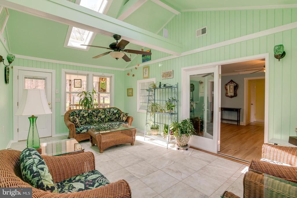 Well-built and thoughtfully updated, this spacious one-level home is nestled on 3.99 private acres and offers a rare combination of functionality, flexibility, and quality construction. The home features a blend of hardwood flooring, luxury vinyl plank, and ceramic tile throughout. The inviting living room offers a classic layout with a ventless gas log fireplace and custom corner built-in shelving. The kitchen is well-appointed with custom maple cabinetry, Corian countertops, abundant cabinet and counter space, and a center island with bar seating, perfect for everyday dining. A separate formal dining room provides an ideal setting for gatherings and entertaining. A standout feature of the home is the bright and airy sunroom, complete with a vaulted ceiling, skylights, built-in shelving, and heated ceramic tile flooring, creating a comfortable space to enjoy year-round natural light. The main level includes a spacious primary bedroom with a walk-in closet and attached half bath, along with a full hall bathroom. A mudroom/laundry area with built-ins and shelving adds convenience and functionality, especially for those coming in from outdoor activities or gardening. An attached in-law suite provides a fully separate living space, featuring its own living room, kitchenette, bedroom, and full bathroom—ideal for multi-generational living, guests, or potential rental use. Additional upgrades include Trane HVAC systems servicing both the main home and in-law suite, Marvin Infinity windows, and insulated siding for improved efficiency. The exterior offers exceptional versatility with multiple outbuildings, including a detached studio/workshop equipped with a mini-split system, ceiling fans, and both 110V and 220V electrical service. A metal shop/barn with 110V electric, a two-car metal carport with attached shed (110V, bay door, and shelving), a one-car enclosed shed with lean-to, as well as a greenhouse, potting shed, potting table, rain barrel, and a large, fenced garden area provide endless opportunities for hobbies, storage, and outdoor living. Starlink internet is available and will convey with three routers, offering reliable connectivity for remote work or streaming needs. This unique property combines solid construction, numerous updates, and exceptional outdoor amenities, all in a peaceful setting while still being conveniently located to nearby amenities.