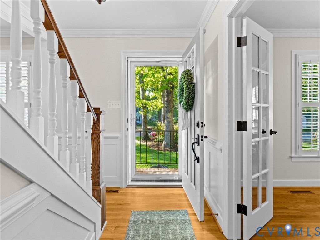 Welcome to this beautifully updated home in the sought after Colonies at Wilde Lake, positioned on a stunning cul-de-sac lot. Featuring a classic brick front with Hardiplank siding, this home showcases stunning hardwood floors and architectural millwork throughout and a thoughtfully designed layout.The first floor is designed for both everyday living and entertaining, offering generous room sizes and a seamless flow. The kitchen is truly the centerpiece, recently updated with quartz countertops and backsplash, a new sink, gas range with downdraft venting, double wall oven, and a well-appointed coffee bar and appliance cabinet complete with a wine fridge. A thoughtfully designed mudroom entrance leads directly into the kitchen, adding both style and everyday functionality. The kitchen opens to a dining room with custom banquette seating offering built-in storage and continues effortlessly into both the inviting family room featuring built-in cabinetry, a wet bar, and a charming brick wood-burning fireplace and the spacious great room with 9-foot ceilings. From here, step out to the covered porch and patio with a brick fireplace, all overlooking the landscaped yard with a 12x10 shed thoughtfully positioned at the back of the property. The second floor offers two spacious primary suites along with three additional bedrooms, a hall bath, and a laundry room complete with a utility sink, washer and dryer, and built-in storage, providing both comfort and functionality for everyday living. A spacious walk-up attic offers excellent storage or future expansion potential. Ideally located in Western Henrico near Short Pump, Wilde Lake, and the Swim and Racquet Club. This home offers the perfect blend of comfort, style, and convenience in one of the area's most desirable communities.