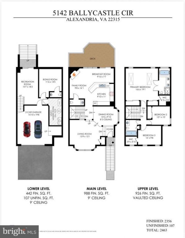 Welcome to 5142 Ballycastle Circle in Alexandria, VA! Well maintained 3 BR end unit Townhome with/2 car garage backing to open common area nestled in the charming KINGSTOWNE community! The traditional floor plan seamlessly connects the living and dining areas. Beautiful hardwood floors and crown molding in the main level dining room as well as kitchen and family room. Formal living room offers brand new wall to wall carpeting, steps up to bright sun filled dining room w/bay window. Gourmet kitchen with upgraded countertops, breakfast bar, stainless steel appliances and plenty of cabinet space. Family room located off the kitchen w/gas fireplace and a half bath, allowing access to the outside deck. Upper level of the home includes primary bedroom with skylights & vaulted ceilings, new wall to wall carpet and spacious walk in closet. Primary bathroom with soaking tub, double vanity, separate walk in shower and recessed lighting. Two additional bedrooms located on the upper level with hallway bathroom that includes a tub shower, ceramic tile flooring and spacious single vanity to share. Bedroom 2 has wood floors and Bedroom 3 offers new wall to wall carpeting, both of the bedrooms includes generous closet space. The lower level offers a full basement with garage access and walkout stairs, providing additional living space, half bath and convenience. Dedicated laundry area featuring a washer and dryer on the lower level. Interior of the home freshly painted as well as brand new wall to wall carpet installed. Sellers replaced the roof in 2020 as well as complete window replacement in 2022. Close to a variety of shopping, dining and entertainment. Approximately 12 miles to the Pentagon, 8 miles to Old Town Alexandria, 14 miles to Ronald Reagan Washington National Airport, 3.9 miles to Franconia/Springfield Parkway and 11 miles to Fort Belvoir. Local Metro Stations include Van Dorn St, Franconia/Springfield and Huntington.