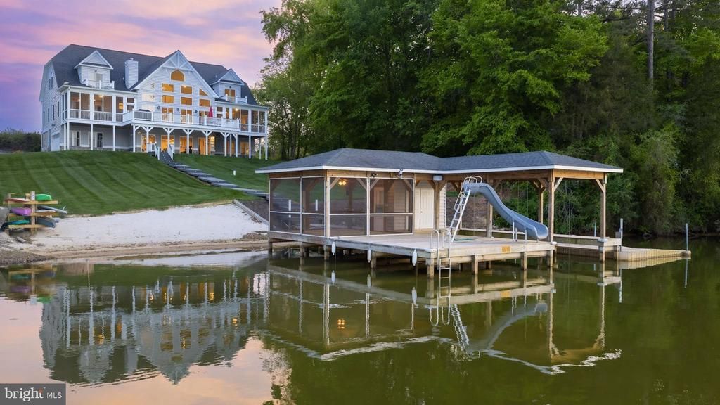 Welcome to resort-style living on the public side of Lake Anna, where long sunny days, sparkling water, and unforgettable sunsets become your everyday backdrop. Built in 2019 and set on just over an acre in the desirable Summerview Point community (with no HOA), this stunning Craftsman-style waterfront home offers over 7,000 square feet of beautifully finished space designed for both relaxation and entertaining—and is being sold fully furnished with an acceptable offer, making it truly turn-key. With 150 feet of pristine shoreline, the setting delivers the ultimate lakefront experience from every angle. From the moment you walk in, you’re greeted by soaring ceilings, a wall of glass framing the lake, and water views from nearly every room. The open floor plan allows the kitchen, family room, and dining areas to flow effortlessly together, creating the perfect setting for gatherings. The gourmet kitchen features a massive center island, granite countertops, and stainless steel appliances—ideal for hosting after a day on the water. The main-level primary suite features a beautifully appointed bath, walk-in closets, and private access to a screened porch overlooking the lake. Upstairs, two spacious bedroom suites each enjoy their own private balconies and baths, creating a peaceful escape for guests. The walkout lower level is built for entertaining, complete with a full kitchen, expansive recreation and dining areas, two additional bedrooms, a full bath, and plenty of space to unwind. Step outside and the lifestyle truly comes alive—composite decking, multiple screened porches, and patios all designed to take in the breathtaking views and fresh lake air. Down at the water’s edge, you’ll find everything you could want for the ultimate lake experience: a deep water covered boathouse with electric lift, sun deck with slide, triple jet ski pad, storage room, and a huge sandy beach perfect for lounging or playing by the water. Gather around the lakeside fire pit as the sun sets, or spend your days cruising, swimming, and soaking it all in. With high-speed FiberLync internet and short-term rental potential offering strong income opportunities, this property delivers not just a home—but a lifestyle of lakefront luxury, fun, and lasting memories
